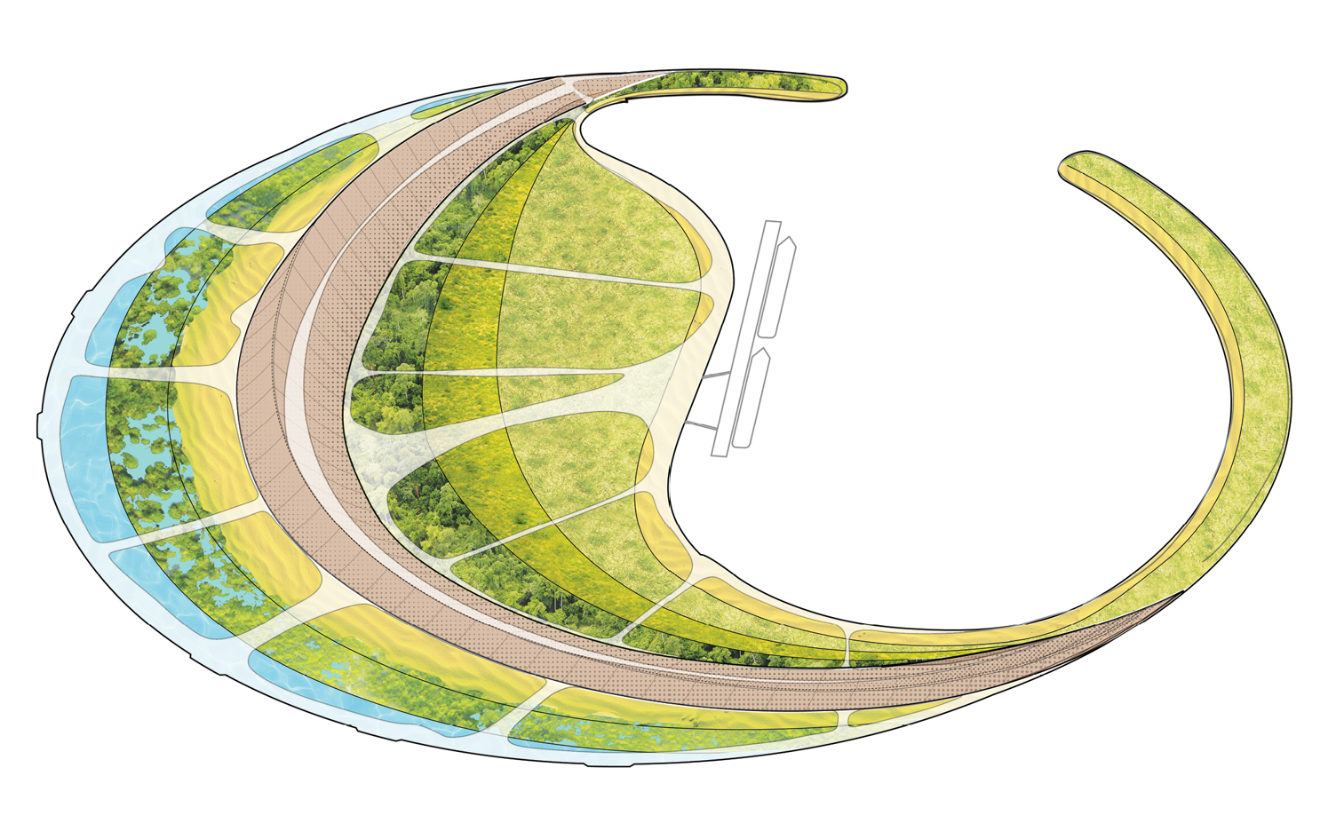 The Caldera rethinks the coastal barrier island not as a defensive object, but as a living system. Instead of hard edges resisting the monsoon, the island absorbs and dissipates energy through wetlands, mangroves, and tidal landscapes.