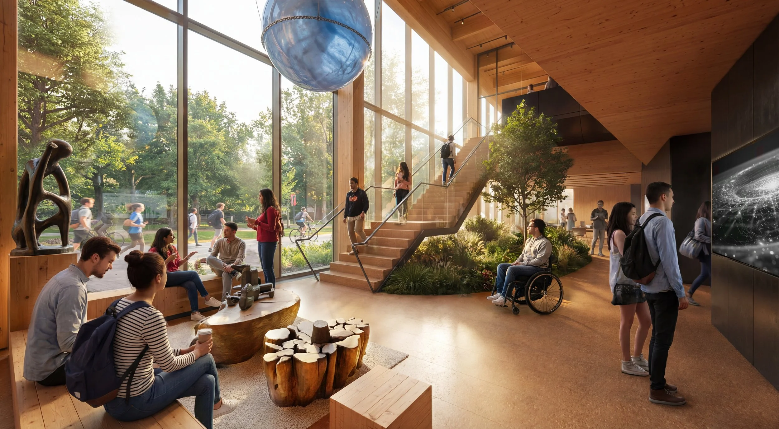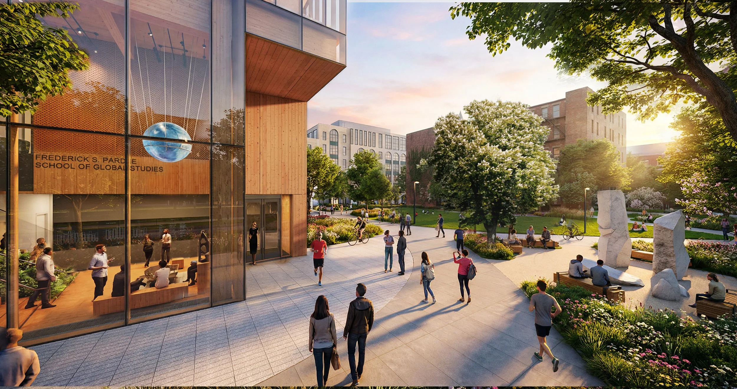The Pardee School of Global Studies Mass Timber design resulted in an 87% reduction in carbon emissions totaling over 1.2 million Kg. of savings when compared to its equivalent steel and concrete structure.